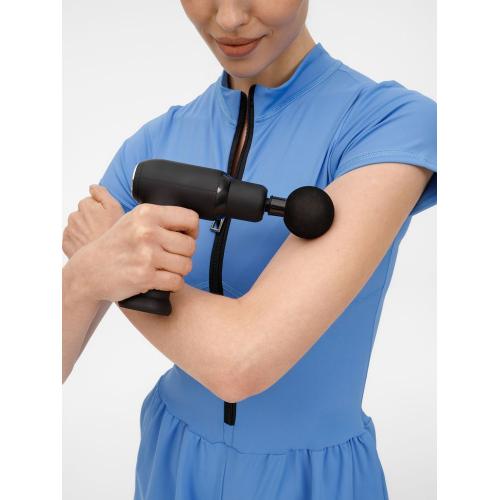 Конструкция массажера выполнена в форме мини-пистолета с тактильно приятным матовыми покрытием и эргономичной ручкой: его удобно держать и просто использовать благодаря кнопочной системе управления.