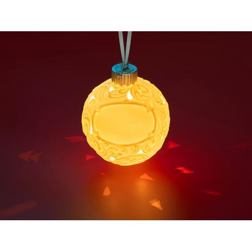 Фарфоровый шар с росписью в технике бисквит. Игрушка ручной работы. Матовая, бархатистая поверхность и пастельные тона создают утонченный образ старинного зимнего праздника. Это воплощение изящества и ностальгии. Шар светится изнутри мягким и ровным светом, наполняя пространство атмосферой спокойствия и волшебства.