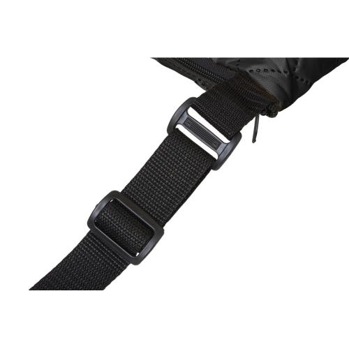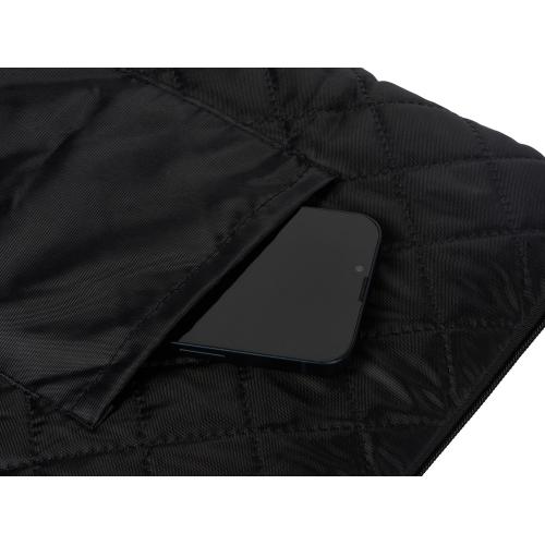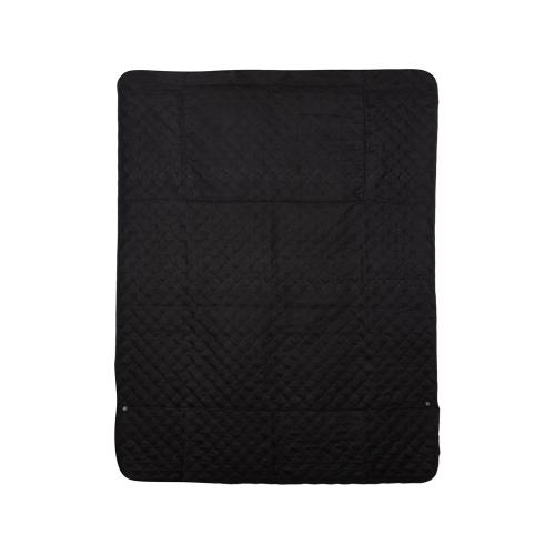 Двухсторонний плед с водоотталкивающим покрытием с одной стороны и мягким флисом с другой. Складывается в сумку на плечо и фиксируется с помощью молнии. В собранном виде имеет регулируемый по длине ремень для переноски и наружный карман для мелочей.