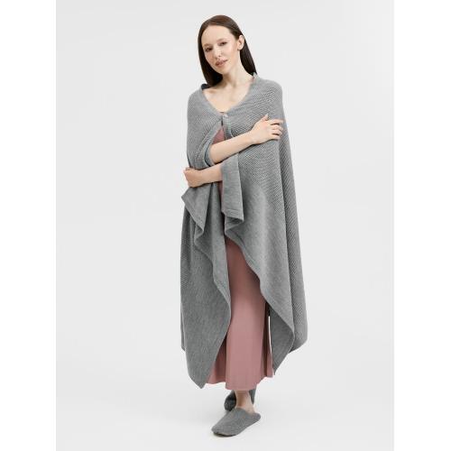 Плед Voyage соткан из мягкого сочетания шерсти и акрила — нежный, теплый и невесомый, он идеален для уютных вечеров. Кнопка позволяет превратить его в элегантную накидку, когда воздух становится прохладнее.