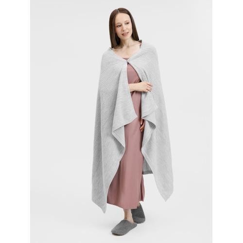 Плед Voyage соткан из мягкого сочетания шерсти и акрила — нежный, теплый и невесомый, он идеален для уютных вечеров. Кнопка позволяет превратить его в элегантную накидку, когда воздух становится прохладнее.