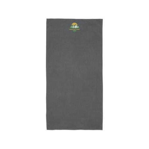 Спортивное полотенце Pieter очень хорошо впитывает влагу, легкое, быстро сохнет, а ткань прочная и очень мягкая. Когда полотенце сложено и закреплено резинкой, оно уменьшается до небольшого размера, поэтому его удобно брать с собой в тренажерный зал, бассейн, на пешую прогулку или в поход. Полотенце размером 50 х 100 см изготовлено из 90 % переработанного полиэстера GRS и 10 % нейлона. Его можно стирать в стиральной машине при температуре 40 °C. В комплект поставки входит мешок для хранения (17 x 13 см), изготовленный из переработанного ПЭТ-пластика, обеспечивающий большую площадь для печати логотипа. 90% Переработанный Полиэстер, 10% Нейлон, 200 g/m2.