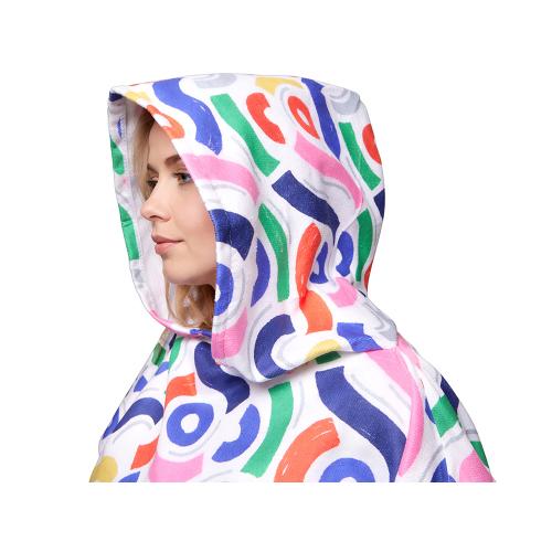 Полотенце с капюшоном - отличный вариант для отдыха на природе. Необычная конструкция модели позволяет одновременно высушить мокрые волосы и использовать полотенце в качестве накидки. Размер полотенца 78х109 см (без учёта капюшона) и материал из мягкого микроволокна также делает его подходящим для пляжа. Запечатка возможна с помощью сублимации - она передаёт все оттенки и градиенты и позволяет воспроизводить фотореалистичные принты. Для большего соответствия фирменному стилю доступны 8 цветов отделочной оверлочной нити, которые добавляют яркий и стильный акцент.