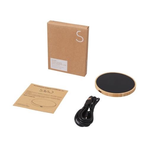 Заряжайте устройства с элегантностью и заботой о планете — с беспроводным зарядным устройством на 15 Вт, выполненным из натурального бамбука и переработанного ABS-пластика. Это не просто функциональный гаджет, а стильный элемент интерьера, который органично впишется в ваш дом, офис или коворкинг. Благодаря поддержке быстрой беспроводной зарядки до 15 Вт, ваш смартфон восполняет энергию без лишних проводов и суеты. А встроенная белая подсветка логотипа добавляет изюминку: ваш бренд или инициалы мягко светятся при зарядке, создавая атмосферу уюта и индивидуальности. Идеальный выбор для тех, кто ценит экологичность, технологии и эстетику.