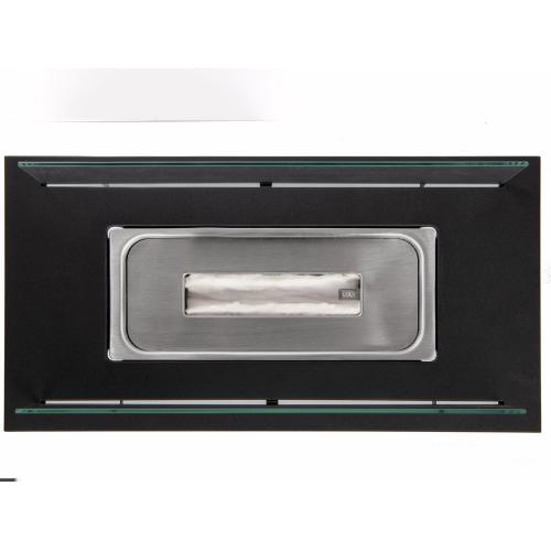 Стильный, минималистичный, он идеально впишется в облик любого пространства, а нанесение тампопечатью, деколью или трафаретной печатью превратит стеклянные стенки в идеальный пылающий фон для лого — кстати, можно обыграть прямоугольную форму биокамина, создавая дизайн в виде интересной рамки. Кроме того, логотипом можно украсить и металлическое основание, добавив гравировку.