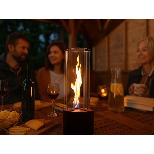 Биокамин Dance of flame — это не просто источник живого огня, а настоящий декоративный перформанс. Его главная особенность — тройная конструкция стеклянных панелей. Они расположены так, что между ними свободно гуляет воздух, создавая внутри завораживающий эффект: пламя не просто горит — оно кружится, словно танцует вальс.