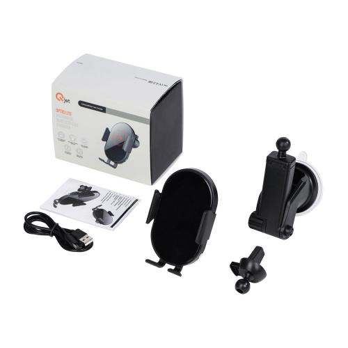 OptIQ Lite от Qjet — беспроводное зарядное устройство, которое автоматически фиксирует и надежно удерживает смартфон, когда вам нужно поместить его на зарядку одной рукой. Для этого коснитесь сенсорной кнопки на корпусе устройства справа или слева и поместите смартфон на нижнюю подставку зарядного устройства. Инфракрасный сенсор считывает присутствие смартфона на устройстве и дает сигнал держателям сдвинуться, после чего они надежно фиксируют телефон, самостоятельно подстраиваясь под его размер.