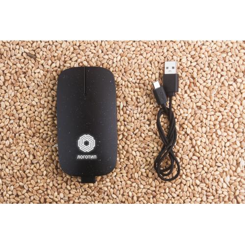 Ультратонкая беспроводная мышь без батареек в модном дизайне. Корпус изготовлен из биоразлагаемого пластика и на 30% из пшеничной соломы. Встроенный аккумулятор позволит вам не беспокоиться о том, что гаджет разрядится, мышкой можно пользоваться, даже в процессе зарядки. Время автономной работы -25 дней.