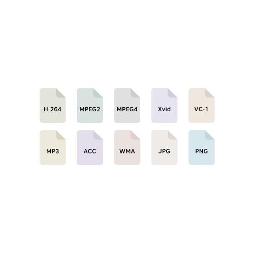 Поддержка кодеков H.264, H.265, MPEG2, MPEG4, MP3, ACC, WMA, JPG, PNG.