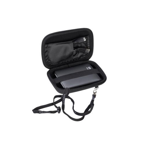 Чехол для внешнего жесткого диска (HDD). • Подходит для большинства 2.5 HDD. • Чехол создан из высококачественного материала EVA, он надежно защищает от внешних воздействий, случайных ударов и царапин, а также от пыли и влаги. • Предусмотрена возможность крепления на поясном ремне. • В комплекте ремень для ношения чехла на плече или на шее. • Устройство надежно крепится внутри чехла специальной фиксирующей лентой, кроме того предусмотрены дополнительные внутренние карманы для кабеля, карт памяти и аксессуаров. • Двойная застежка молния для удобного доступа к устройству.
