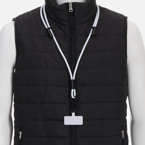 Важно: Для крепления телефона на ланьярд телефон должен иметь чехол. Если ланьярд распускается под тяжестью смартфона, убедитесь, что среднее из трех колец фурнитуры находится по центру ланьярда (на шее под затылком), а не сбоку. Соседние ветви оплетки должны идти вместе, без зазоров, так достигается трение ткани о ткань. Слишком тяжелые смартфоны (диагональ 6,9" и более) могут распускать ланьярд при энергичных движениях.