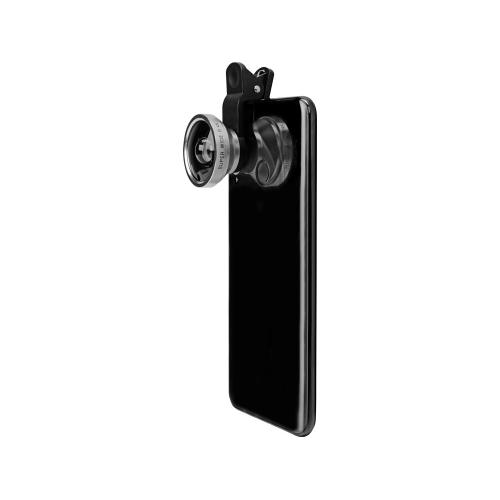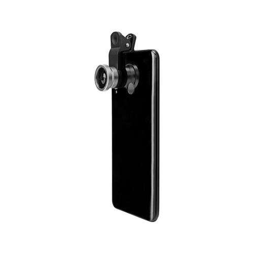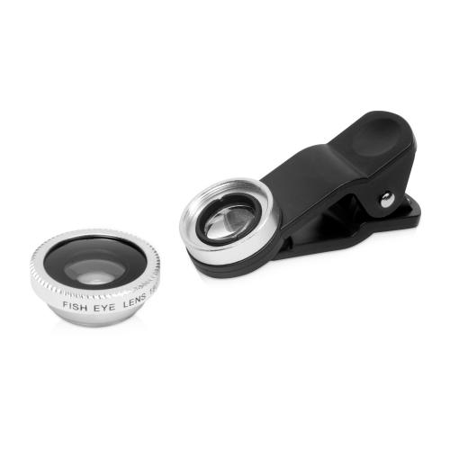 Универсальный набор из 3 линз (объективов) для смартфона. Подходит как для внешних, так и для камер селфи. В наборе: широкоугольный объектив (0,4 х), объектив рыбий глаз (180°) разбирается на 2 части, одна из них - объектив для макросъёмки, зажим-прищепка для крепления объективов, инструкция, пластиковый бокс, защитные крышки для объективов, мягкий чехол.