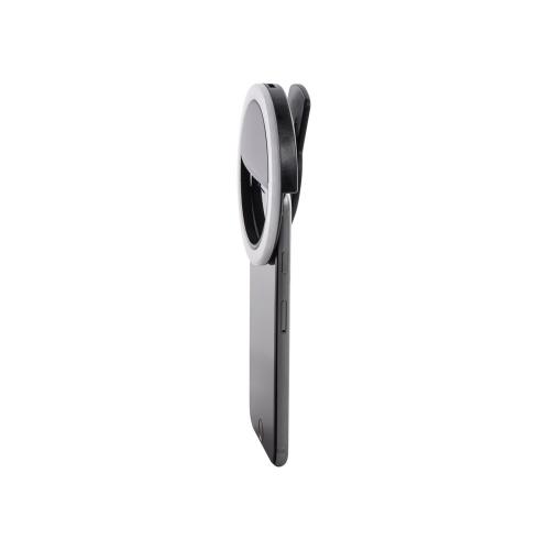 Световое кольцо Glitter делает ваши селфи- фото и видео более качественными за счет дополнительного освещения. Подсветка представлена нейтральным белым цветом от 48 светодиодов с 3 режимами яркости. Время непрерывного свечения - до 2 часов. Можно быстро зарядить от любого пауэрбэнка по micro USB. Благодаря удобной конструкции селфи-кольцо устанавливается и снимается за секунду. На корпусе имеются силиконовые защитные полоски, чтобы исключить даже малейшие повреждения экрану смартфона.