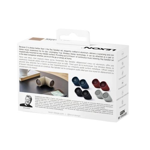 Ray Speaker — это дуэт магнитных Bluetooth®-колонок, удостоенных наград Red Dot Design Award и IF Design Award. Обеспечивая захватывающий стереозвук благодаря технологии True Wireless Stereo, эти колонки легко крепятся друг к другу или к любой магнитной поверхности, что делает их идеальными для использования дома или в дороге. Помимо прослушивания музыки, Ray Speaker позволяет совершать звонки без помощи рук и дистанционно делать селфи. Благодаря аккумулятору, работающему до 8 часов, и элегантному алюминиевому корпусу, они добавят современный штрих в ваш интерьер, а степень водонепроницаемости IPX4 позволяет использовать их на улице. Доступны различные цвета, которые дополнят ваш стиль. - Комплект магнитных динамиков Bluetooth® - Совместимость с TWS для стереозвучания - Микрофон без помощи рук - Управление селфи - Удобный для использования на открытом воздухе IPX4 - Срок службы батареи: до 8 ч - Время зарядки: 3 ч - Зарядка через кабель USB C в комплекте - Питание: USB-адаптер питания 5 В в комплект не входит