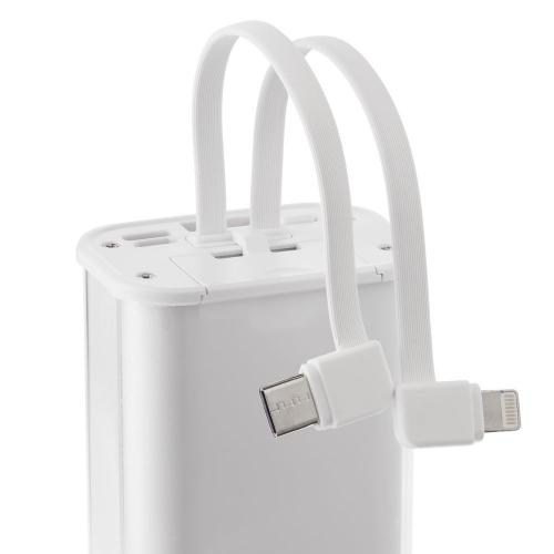Встроенные кабели позволяют заряжать устройства с разъемами USB Type-C и Lightning.