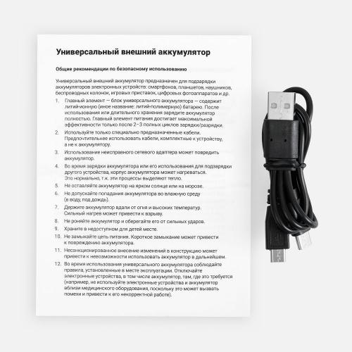 Компактный аккумулятор c функцией беспроводного заряда и тремя типами зарядных портов: Apple Lightning, USB Type-C и micro USB. Позволит весь день пользоваться и планшетом на iOS, Android или Windows, и смартфоном. Может заряжаться как прилагаемым зарядным кабелем, так и штатным кабелем мобильного устройства.
