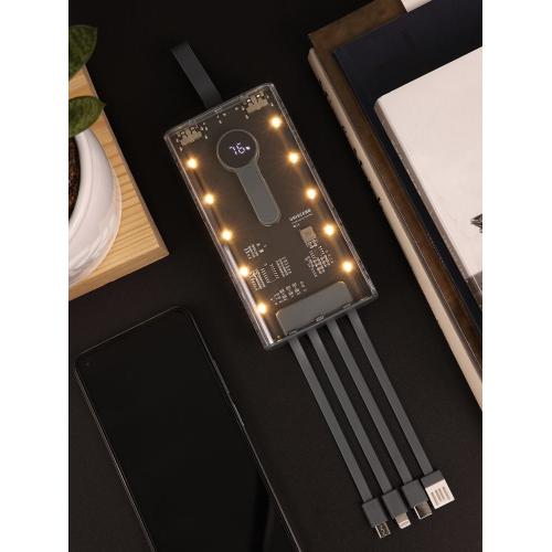 Необычный дизайн коллекции Uniscend Trellis выгодно выделяет новую серию устройств из прозаичного ряда внешних аккумуляторов. Они не поддерживают беспроводную зарядку, зато точно привлекают внимание: под прозрачной панелью хорошо видны электронная начинка и цифровой индикатор оставшегося в аккумуляторе заряда, а мягкая светодиодная подсветка теплого оттенка дополняет технологичный внешний вид.