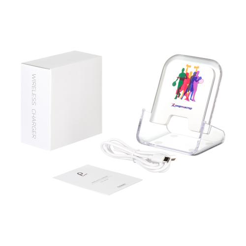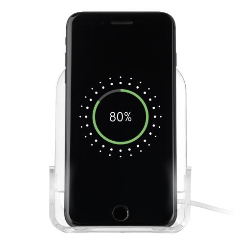 Конструкция позволяет заряжать смартфон в вертикальном и горизонтальном положении, а также просто использовать как подставку.