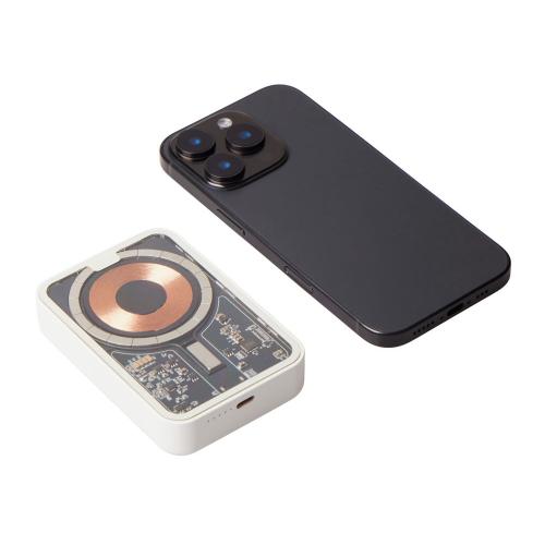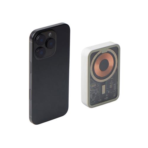 Беспроводной магнитный внешний аккумулятор MagnifIQ — технологичный и стильный power bank с эффектной прозрачной передней панелью, сквозь которую видны мощные магниты, индукционная катушка и электронная начинка. Ёмкость 10 000 мА·ч обеспечивает до 2–3 полных зарядов смартфона, а поддержка быстрой беспроводной зарядки до 15 Вт (с совместимостью QC/PD) делает процесс зарядки максимально быстрым и удобным. Двунаправленный USB-C порт позволяет как заряжать другие устройства, так и сам аккумулятор. Обе стороны корпуса подходят для нанесения логотипа: лицевая — через прозрачную панель, задняя — на приятное на ощупь soft-touch покрытие. Компактный, надёжный и сильный — идеальный технологичный продукт для продвижения и ежедневного использования. Поставляется в качественной упаковке с шубером, Двунаправленный кабель USB-C и кабель USB-A – USB-C в комплекте. • Прозрачная передняя панель — демонстрирует внутреннюю начинку и подчеркивает технологичность бренда. • Магнитная беспроводная зарядка 15 Вт • Ёмкость 10 000 мА·ч — хватает на несколько полных зарядов смартфона. • Двунаправленный USB-C — универсальность для зарядки и подзарядки. • Две зоны нанесения логотипа: на прозрачную панель спереди и на soft-touch покрытие сзади. • Сильные магниты обеспечивают надёжную фиксацию на совместимых устройствах.