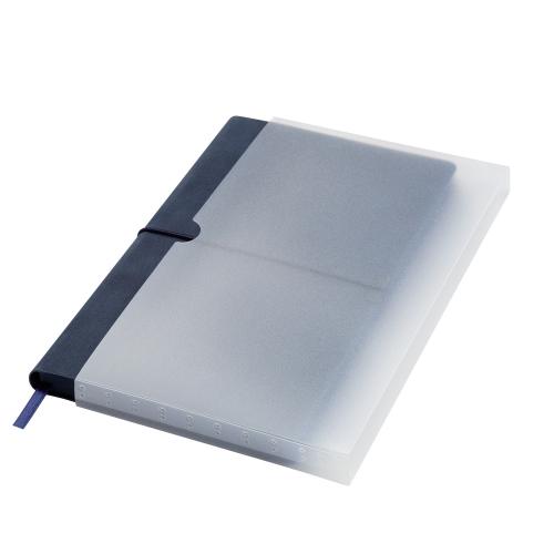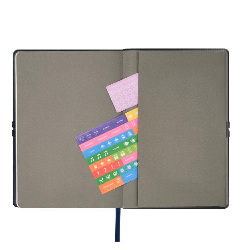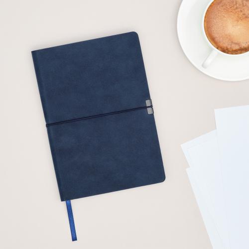 Горизонтальная резинка, фиксирующая обложку, дополнена металлическими элементами, которые не только защищают обложку от повреждений, но и служат стильным акцентом. Матовый срез в тон обложки и светло-кремовые страницы из гладкого, слегка шелковистого офсета подчеркивают изысканность дизайна. Атласное ляссе гармонично завершает образ этого элегантного ежедневника.