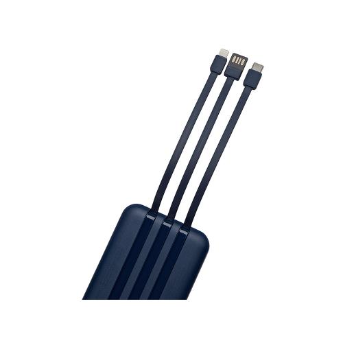 Магнитный беспроводной внешний аккумулятор со встроенными кабелями Мэни,быстаря зарядка, 10000 мАч, тёмно-синий, артикул 590164.72