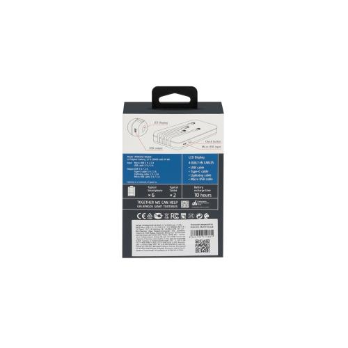 Литий-полимерный внешний аккумулятор емкостью 20000 мАч. Цифровой дисплей показывает уровень заряда. Защита от перегрузок, короткого замыкания, чрезмерного заряда и разряда. Автоматическое включение/выключение. Достаточно подключить кабель к разъему мобильного устройства и начнется заряд. Сквозной заряд - можно одновременно заряжать телефон и сам аккумулятор. Количество зарядов смартфона до 6 раз. (Зависит от емкости аккумулятора смартфона). ОСНОВНЫЕ ПРЕИМУЩЕСТВА: 4 встроенных кабеля - не надо искать подходящий кабель для Вашего телефона! Цифровой дисплей. Сквозной заряд.
