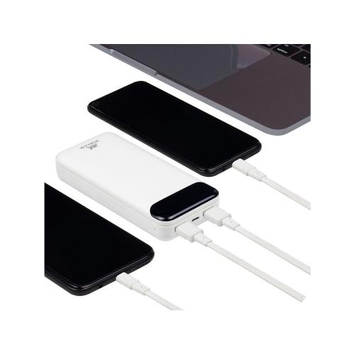 Литий-полимерный внешний аккумулятор емкостью 20000 мАч. Цифровой дисплей показывает уровень заряда (25/50/75/100%). Защита от перегрузок, короткого замыкания, чрезмерного заряда и разряда. Автоматическое включение/выключение. Достаточно подключить кабель к разъему мобильного устройства и начнется заряд. Сквозной заряд - можно одновременно заряжать телефон и сам аккумулятор. Количество зарядов смартфона до 5 раз. (Зависит от емкости аккумулятора смартфона) Кабель в комплекте. SMART OUTPUT - Аккумулятор определят подключенное устройство и выбирает оптимальный режим заряда. Type-C вход.