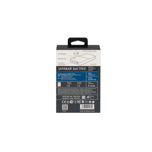 Литий-полимерный внешний аккумулятор емкостью 20000 мАч с поддержкой QC 3.0 и PD. Поддержка режима быстрой зарядки Quick Charge (QC 3.0) и Power Delivery (PD). Поддержка режимов быстрой зарядки Huawei FCP и Samsung AFC. Защита от перегрузок, короткого замыкания, чрезмерного заряда и разряда. Автоматическое включение/выключение. LED индикатор показывает уровень заряда (заряжен/в процессе заряда/разряжен). Кабель USB - Type-C, поддерживающий режим Quick Charge, в комплекте. Емкости достаточно для 6 зарядок обычного смартфона или до 3 зарядок обычного планшета. Кабель USB - Type-C, поддерживающий режим Quick Charge, в комплекте. Функция сквозного заряда: Можно одновременно заряжать внешний аккумулятор и подключенное к нему устройство.