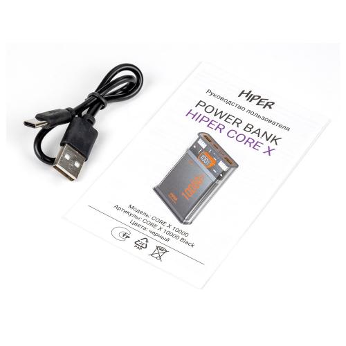 HIPER CORE X 10000 имеет компактные размеры 143х68х17 мм и весит всего 0,24 кг, что делает его легким и удобным для переноски в сумке или кармане.