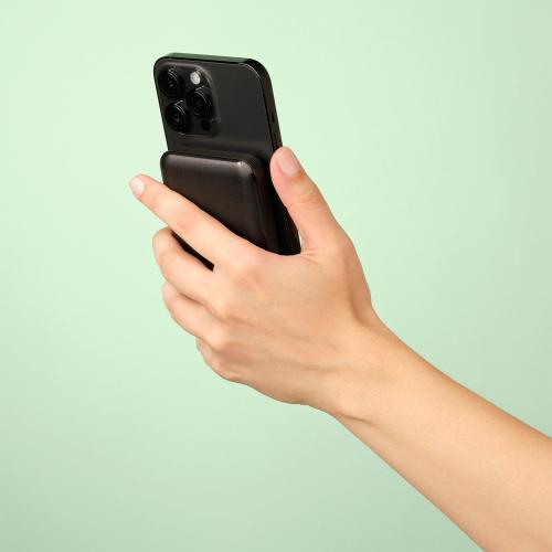 Устройство очень компактное, что позволяет без труда пользоваться смартфоном с примагниченным аккумулятором. Откидной клапан на корпусе позволяет использовать аккумулятор в качестве подставки для смартфона во время зарядки – мощный встроенный магнит прочно фиксирует смартфон в вертикальном и горизонтальном положении.