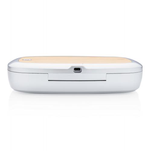 Многофункциональный стерилизатор UV-C, убивающий до 99,9% бактерий, находящихся внутри устройства. Просто поместите в него наушники, украшения, часы и защитную маску, чтобы стерилизовать их при помощи технологии UV-C. Вы можете выполнить быструю очистку за 90 секунд или полную за 5 минут. Лампы UV-C нетоксичны и сделаны без использования ртути, в отличие от многих УФ-ламп на рынке. Кроме того, функция стерилизации работает только при закрытой крышке и автоматически отключается при открывании устройства, что защитит вас от воздействия света UV-C. Лампы рассчитаны на 10 000 часов использования. В верхней части устройства расположена док-станция с функцией беспроводной зарядки, выполненная из натурального бамбука. В комплект входит 100-сантиметровый кабель TPE (без ПВХ). Вход: 5 В / 1,5 А; Выход: 5 / 1А - 5 Вт. Длина волны UV-C 270-280 нм.