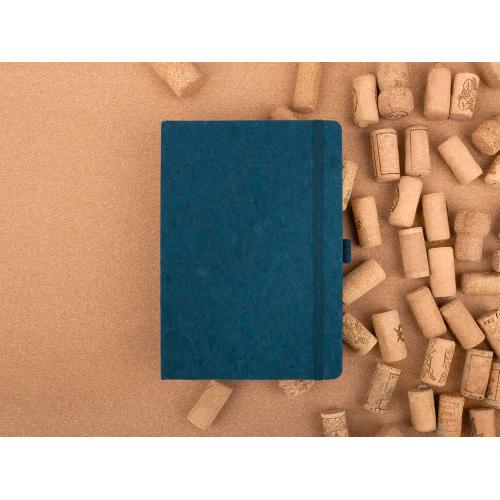 Блокнот с твердой обложкой из натуральной окрашенной пробки, дополнен петлей-резинкой для ручки, ляссе и резинкой в цвет обложки.