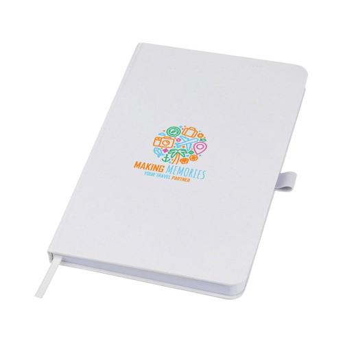 Легкий блокнот в твердой обложке для повседневных заметок с обложкой из материалов из ответственных источников. Коричневая обложка содержит остатки кофе, зеленая — остатки оливок, а белая — кукурузы. Имеет 80 листов (70 г/м²) из переработанной белой линованной бумаги.