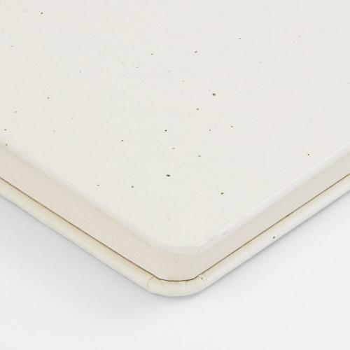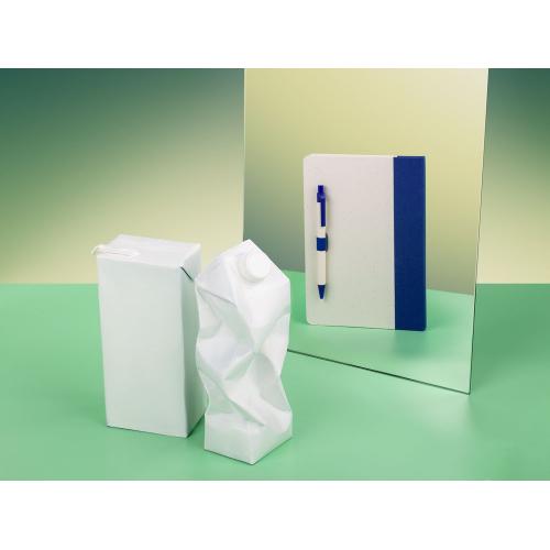 Бумага и обложка произведены из переработанных пакетов из-под молока. Обложка из картона плотностью 140 г/м² .