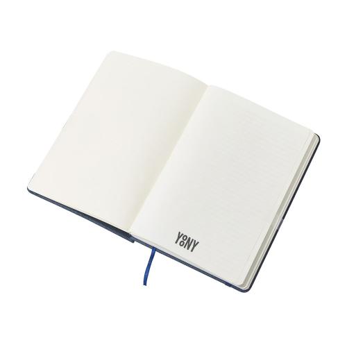 Блокнот в твердой обложке из rpet-пластика с металлической шариковой ручкой. В обложке магнитный держатель для ручки. Также верхняя часть обложки трансформируется в подставку для телефона.