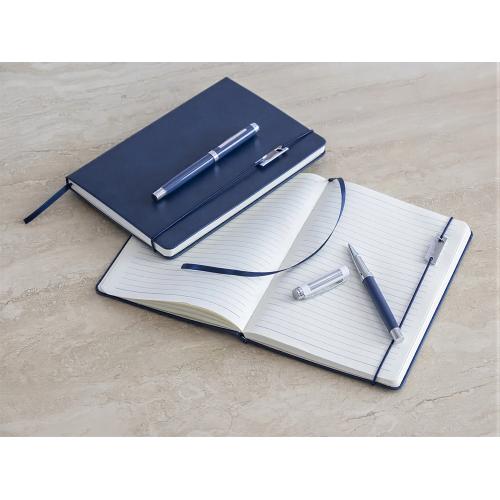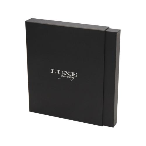 Набор Legato — это элегантное сочетание блокнота формата А5 и ручки-роллера. Ручка имеет верхний корпус из переработанной латуни, сертифицированной RCS, с серебряным хромированием, нижний корпус с цветным напылением, металлические хромированные аксессуары и логотип LUXE на среднем кольце. Цвет чернил: синий. Длина непрерывной линии: 400 метров. Диаметр пишущего узла: 0,7 мм. В комплект входит дополнительный стержень черного цвета. В блокноте 80 листов разлинованной кремовой бумаги плотностью 80 г/м², обложка из полиуретана, похожего на кожу, эластичная застежка, лента-закладка. Металлический шильд на эластичной застежке. Поставляется в картонной подарочной коробке.