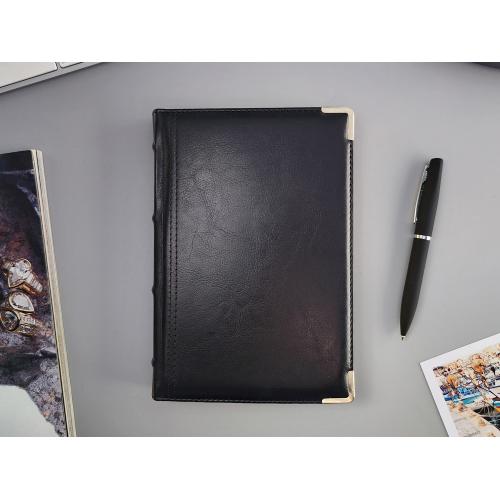 В ежедневнике есть полезная справочная информация и телефонная книга, а также страницы для записи идей, мыслей и составления рабочих планов. Есть перфорация (нижние уголки отрывные). Для изготовления страниц используется качественный бежевый офсет повышенной плотности (80 г/кв м), которая производится японской фирмой Daiwa и подходит для всех видов чернил.