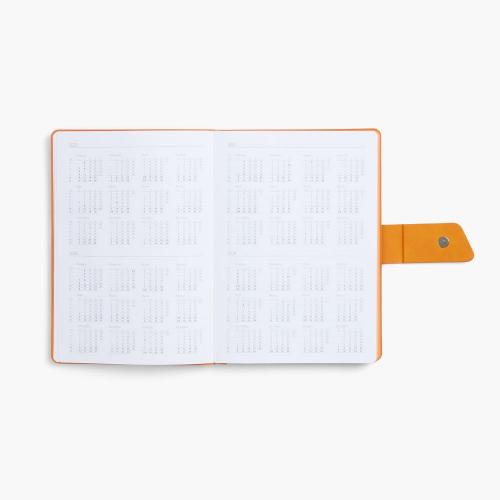 Ежедневник с гибкой обложкой, выполнен из материала La Fite, черный АА и Nubuck Touch, оранжевый, дополнен оранжевым ляссе и хлястиком на кнопке.