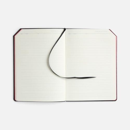 Ежедневник с гибкой обложкой, выполнен из материала Espresso, дополнен ляссе черного цвета и хлястиком на кнопке.