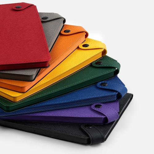 Ежедневник с гибкой обложкой, выполнен из материала Espresso, дополнен ляссе черного цвета и хлястиком на кнопке.