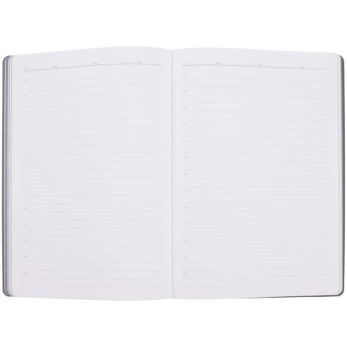 Гибкая обложка выполнена из материала Soft Touch, серый СС и Latte, серый СС (внутренняя часть обложки). Внутри корешка — специальное место для крепления ручки размером до 15х1 см.