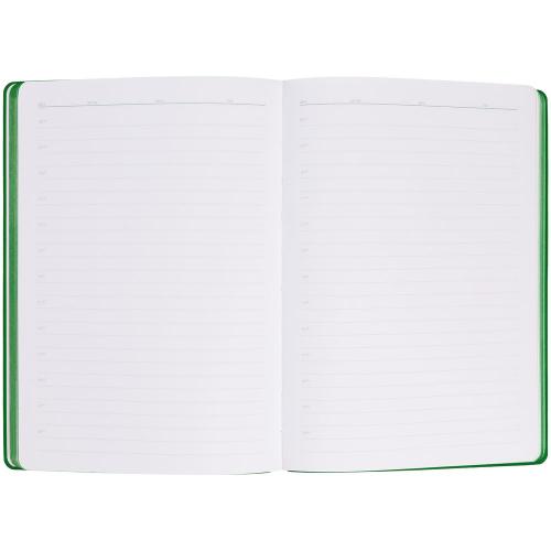 Гибкая обложка выполнена из материала Soft Touch Ultra, зеленый FF и Latte, зеленый FF (внутренняя часть обложки). Внутри корешка — специальное место для крепления ручки размером до 15х1 см.