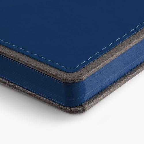 Ежедневник с твердой обложкой, выполнен из материалов Soft Touch Ultra, синий НН и La Fite, серый СС. Ляссе темно-серого цвета.