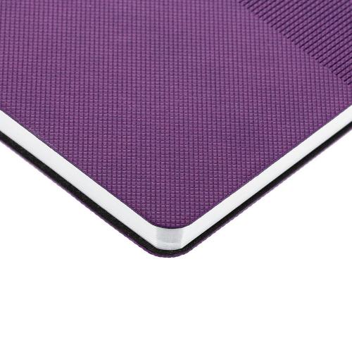 Ежедневник с гибкой обложкой, выполнен из материала Canyon, фиолетовый UU, дополнен ляссе в цвет обложки. Блинтовое тиснение на обложке создает эффект вязаного полотна.