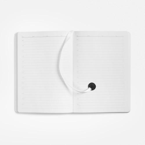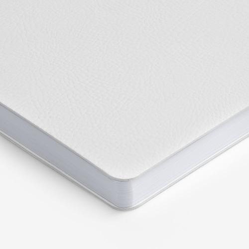 Ежедневник с гибкой обложкой, выполнен из материала Prestige, белый BB, дополнен ляссе в цвет обложки с металлическим шильдом.
