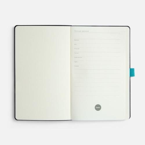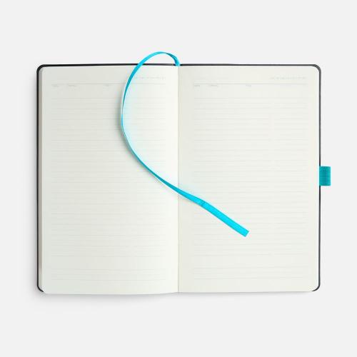 Ежедневник с гибкой обложкой, выполнен из материала Espresso, дополнен цветными ляссе и петлей-резинкой для ручки.