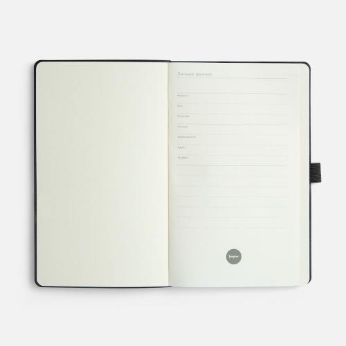 Ежедневник с гибкой обложкой, выполнен из материала Espresso, дополнен цветными ляссе и петлей-резинкой для ручки.