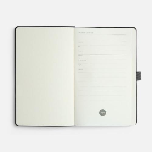Ежедневник с гибкой обложкой, выполнен из материала Espresso, дополнен цветными ляссе и петлей-резинкой для ручки.