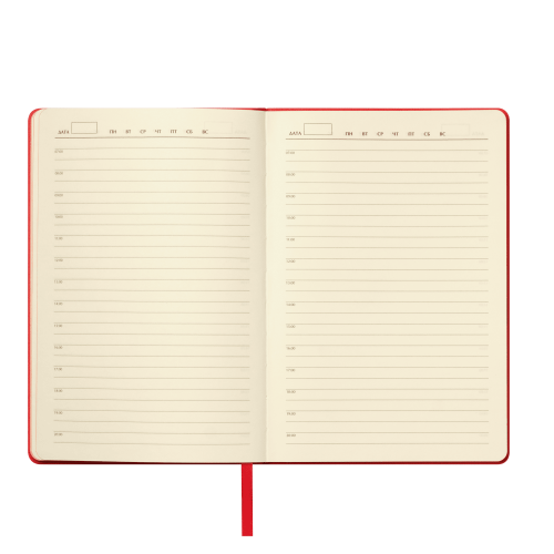 Недатированный ежедневник в гибкой обложке из высококачественной искусственной кожи сочетает в себе практичность и стильный дизайн. Текстурированная матовая поверхность с деликатным рельефом имитирует натуральную кожу, а скругленные углы обложки и блока добавляют изящества.