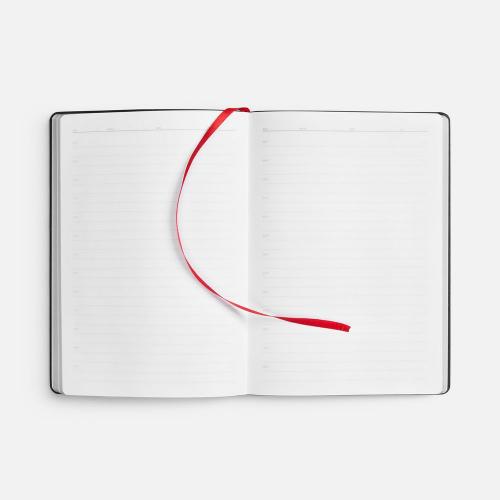 Ежедневник с гибкой обложкой, выполнен из материала Nebraska, красный PP, дополнен ляссе красного цвета.
